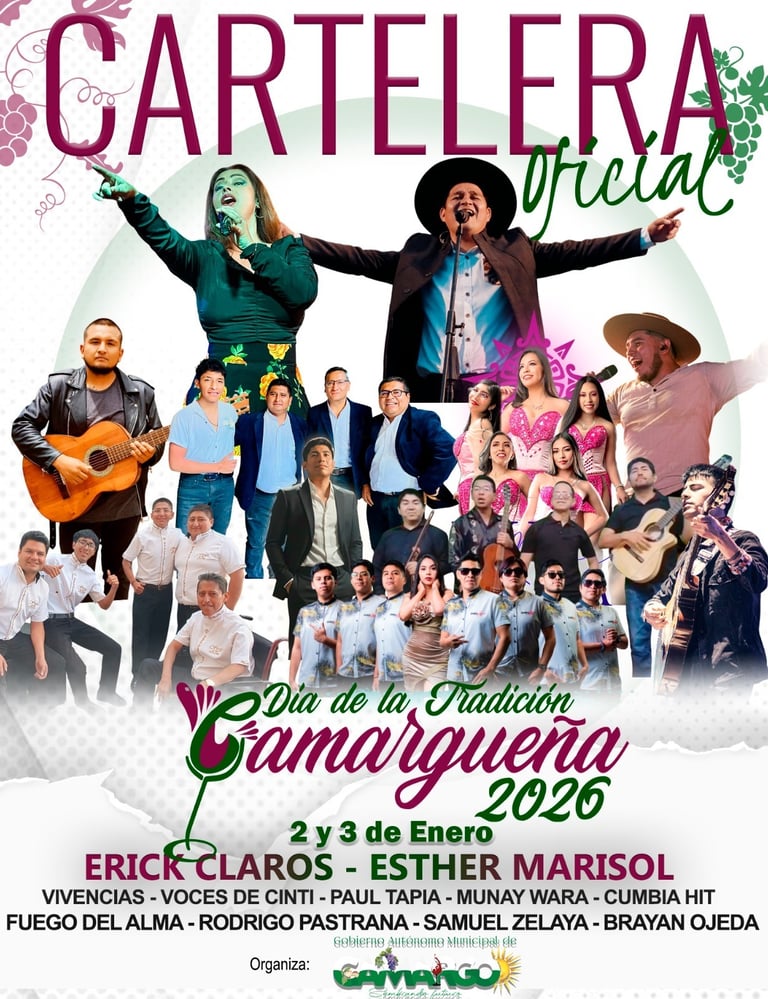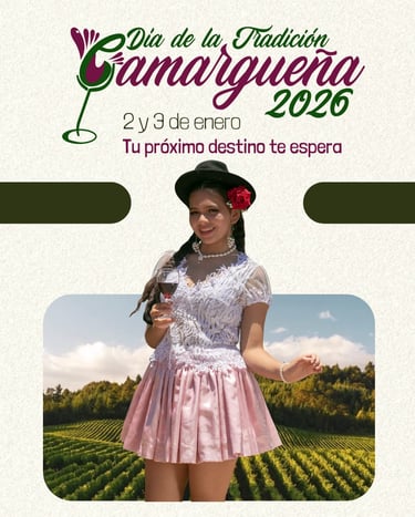 El Día de la Tradición Camargueña, es un evento integrador que invita a visitar Camargo, convivir con sus costumbres y tradiciones en dos días llenos de música, alegría, bañados de sol, con sabores y aromas de vinos, singanis y comidas típicas hechas con manos camargueñas.